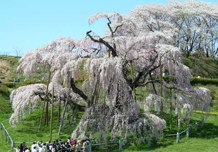 福島県三春町の「三春滝ザクラ」(4月24日)。