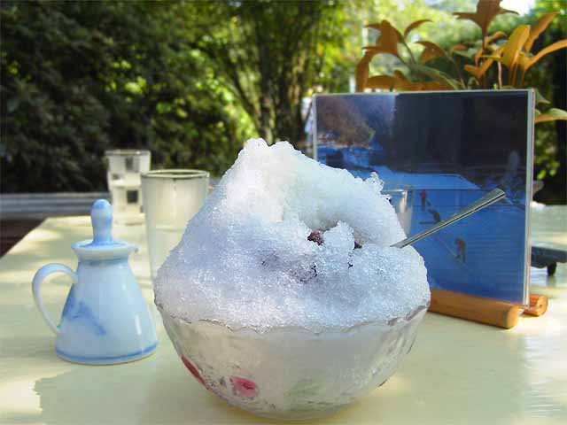 氷は、口の中でふわりとばらけて気持ちいー。重さやベタベタ感は微塵もありません。でも、アイスクリームのように味は濃厚です。同じ量のアイスクリームだったらまず食べきれきませんが、このかき氷はペロリ。