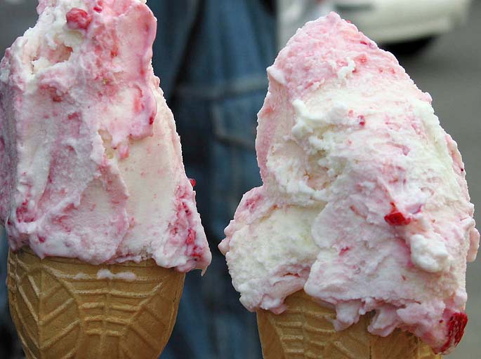 栃木特産の苺「とちおとめ」をその場でまるごと潰して、これまた地元産の牛乳を使った手作りミルクアイスにたっぷりとぶち込んだ「おとめミルク」はあまりのおいしさに笑ってしまいました。300円。