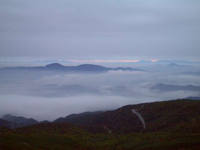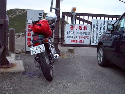 当日は天候はそれほど悪くは無かったのですが、雲が低くて「御来光」って感じでにはなりませんでした。それよりも、長野側からだと頂上ゲートが7時まで開かなかったので、ゲート前にバイクを止めた後3時間ほど徒歩で山登りしたりしながら過ごしてました。ライダーの数は多かったですが、皆、高度の影響でアイドリング不調のためエンスト続発の様子でした。まぁ、大丈夫なのはキャブの変わる前のTWくらいでしょうが。