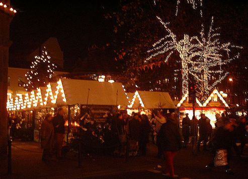 こちらは11月終わりから街中に写真のようなマーケットが並び、