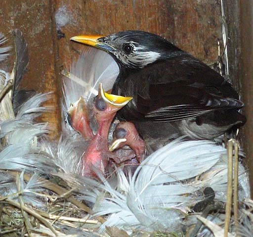 雨戸の戸袋の中でムクドリの雛が孵ってました。
