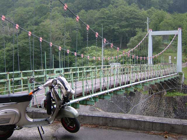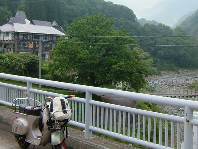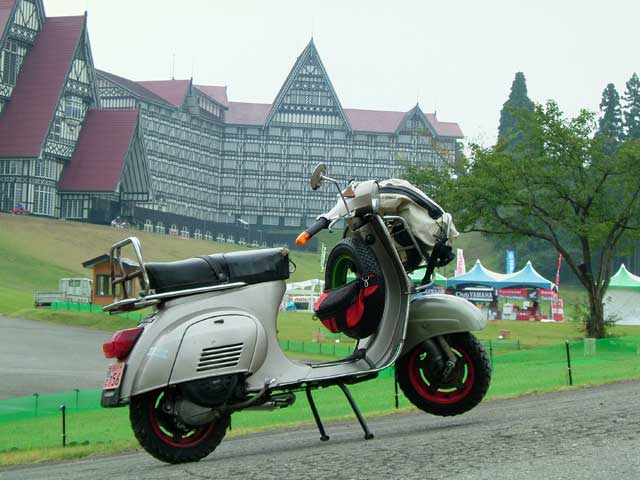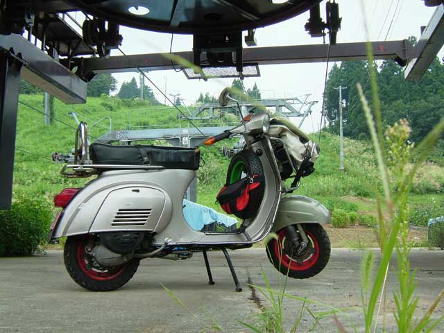 この後、湯沢のクアハウスでまた温泉(天然掛け流し!)につかり、雨の中、ベスパを車に積んでもらって帰りました(ずるい?)。