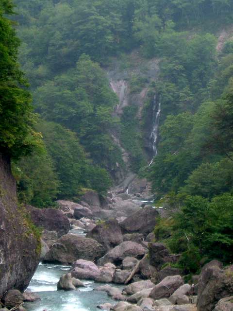 魚野川と雑魚川が合流して中津川となる場所が切明。新潟・長野側のR405はこのあたりで途切れます。魚野川の源流は群馬県の野反湖で、R405はそこから再開。直線距離で10kmちょっとですが、地図に載るような道はないので、150km以上回り道するのが一番の近道。R405がもしつながったら、関東からの観光客でここもがらっと変わるだろうけど、当分その心配はなさそう。ちなみに、野反湖ダムから流れてる川は日本海に流れ込んでたんですね。
