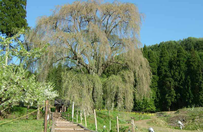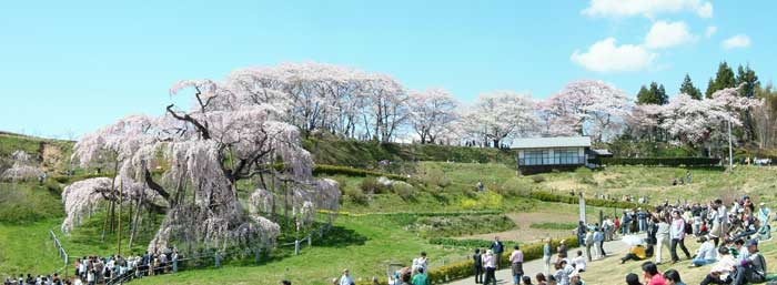 福島県三春町の「三春滝ザクラ」(4月24日)。
