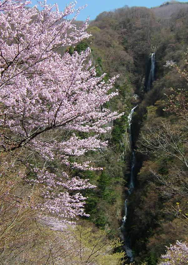 二・三枚目 5月4日:高山村山田牧場に登る県道66号沿いにある八滝。落差180mもある豪快な滝。白い山桜も満開でした。この辺りの標高は1000m。