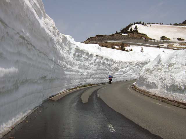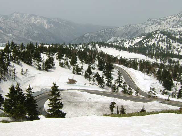 万座温泉と須坂を結ぶ県道。昨年はゲートが閉じていて難渋したので、今年はあらかじめ長野県建設事務所に電話をし、4/27に開放することを確認して通行しました。