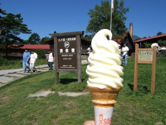 まずは、清里の清泉寮でソフトクリーム。 味は濃厚で、うまっ!!
